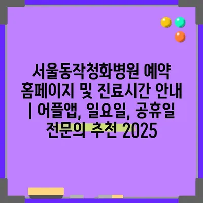 ✅ 서울동작청화병원의 진료시간과 예약 방법을 자세히 알아보세요.