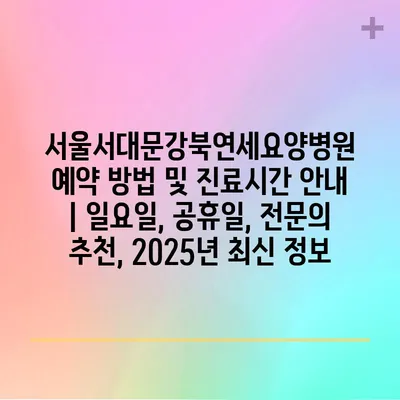 서울서대문강북연세요양병원 예약 방법 및 진료시간 공지 | 일요일, 공휴일, 전연락 추천, 2025년 최신 정보에 대해 자주 묻는 질문 TOP 5