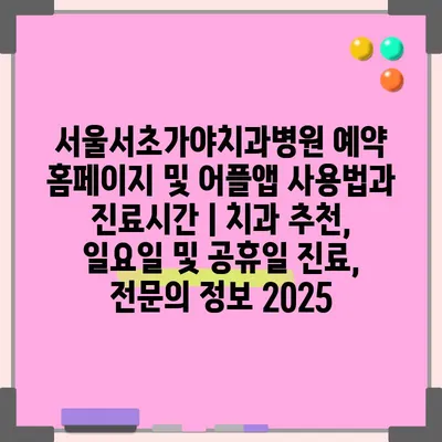 서울서초가야치과병원 예약 홈페이지 및 어플앱 사용법과 진료시간 | 치과 추천, 일요일 및 공휴일 진료, 전문의 정보 2025