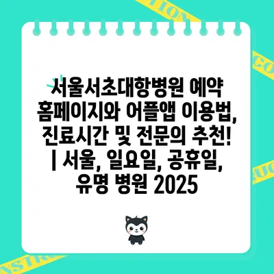 서울서초대항병원 예약 홈페이지와 어플앱 이용법, 진료시간 및 전연락 추천! | 서울, 일요일, 공휴일, 유명 병원 2025에 대해 자주 묻는 질문 TOP 5