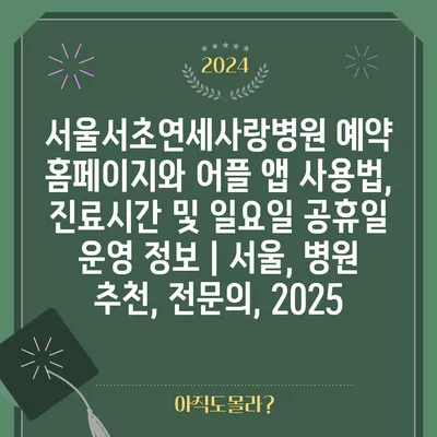 서울서초연세사랑병원 예약 홈페이지와 어플 앱 사용법, 진료시간 및 일요일 공휴일 운영 정보 | 서울, 병원 추천, 전연락, 2025에 대해 자주 묻는 질문 TOP 5