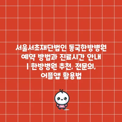 ✅ 서울서초재단법인 동국한방병원의 예약 방법과 진료 시간을 알아보세요.