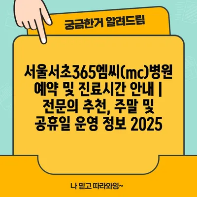 서울서초365엠씨(mc)병원 예약 및 진료시간 공지 | 전연락 추천, 주말 및 공휴일 운영 정보 2025 에 대해 자주 묻는 질문 TOP 5