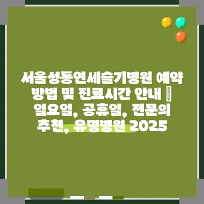 서울성동연세슬기병원 예약 방법 및 진료시간 공지 | 일요일, 공휴일, 전연락 추천, 유명병원 2025 에 대해 자주 묻는 질문 TOP 5