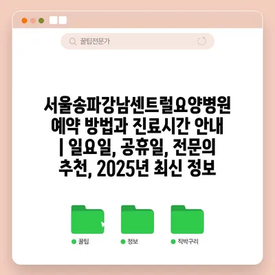 서울송파강남센트럴요양병원 예약 방법과 진료시간 공지 | 일요일, 공휴일, 전연락 추천, 2025년 최신 정보 에 대해 자주 묻는 질문 TOP 5