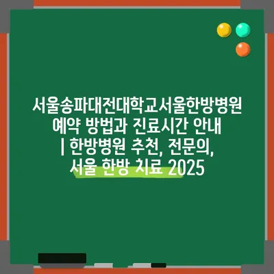 ✅ 서울송파대전대학교서울한방병원의 예약 절차와 진료 시간을 알아보세요.