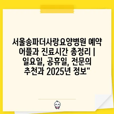 서울송파더사랑요양병원 예약 어플과 진료시간 총정리 | 일요일, 공휴일, 전연락 추천과 2025년 정보