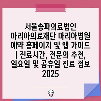 서울송파의료법인 마리아의료재단 마리아병원 예약 홈페이지 및 앱 설명서 | 진료시간, 전연락 추천, 일요일 및 공휴일 진료 정보 2025 에 대해 자주 묻는 질문 TOP 5