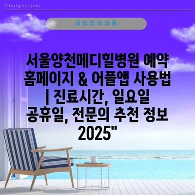 서울양천메디힐병원 예약 홈페이지 & 어플앱 사용법 | 진료시간, 일요일 공휴일, 전문의 추천 정보 2025″