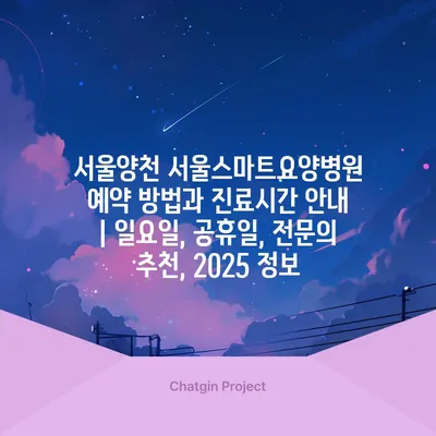 서울양천 서울스마트요양병원 예약 방법과 진료시간 공지 | 일요일, 공휴일, 전연락 추천, 2025 정보 에 대해 자주 묻는 질문 TOP 5