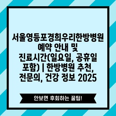 서울영등포경희우리한방병원 예약 공지 및 진료시간(일요일, 공휴일 포함) | 한방병원 추천, 전연락, 건강 정보 2025에 대해 알아보겠습니다.
