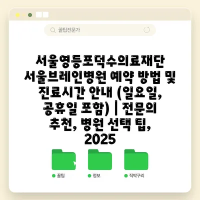 서울영등포덕수의료재단 서울브레인병원 예약 방법 및 진료시간 공지 (일요일, 공휴일 포함) | 전연락 추천, 병원 선택 팁, 2025