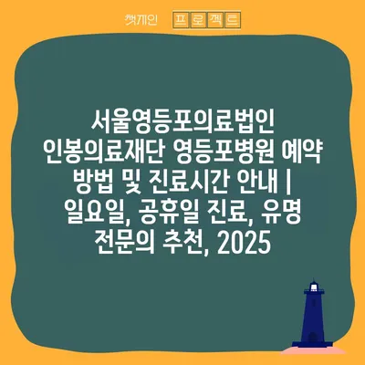 서울영등포의료법인 인봉의료재단 영등포병원 예약 방법 및 진료시간 공지 | 일요일, 공휴일 진료, 유명 전연락 추천, 2025 에 대해 자주 묻는 질문 TOP 5