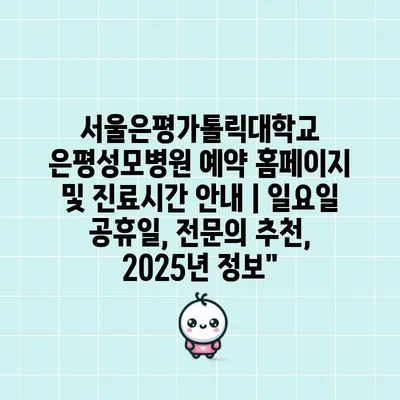 서울은평가톨릭대학교 은평성모병원 예약 홈페이지 및 진료시간 공지 | 일요일 공휴일, 전연락 추천, 2025년 정보