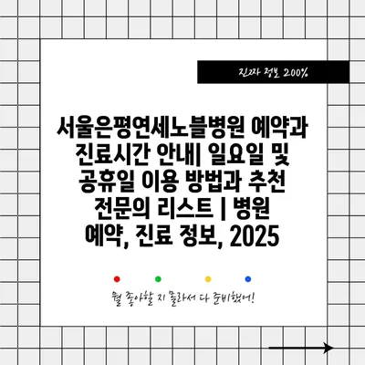 서울은평연세노블병원 예약과 진료시간 공지| 일요일 및 공휴일 이용 방법과 추천 전연락 리스트 | 병원 예약, 진료 정보, 2025 에 대해 자주 묻는 질문 TOP 5