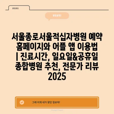 서울종로서울적십자병원 예약 홈페이지와 어플 앱 이용법 | 진료시간, 일요일&공휴일 종합병원 추천, 전문가 리뷰 2025에 대해 알아보겠습니다.