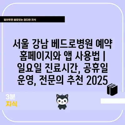 서울 강남 베드로병원 예약 홈페이지와 앱 사용법 | 일요일 진료시간, 공휴일 운영, 전문의 추천 2025