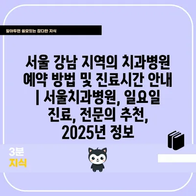 서울 강남 지역의 치과병원 예약 방법 및 진료시간 안내 | 서울치과병원, 일요일 진료, 전문의 추천, 2025년 정보