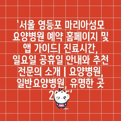 ‘서울 영등포 마리아성모 요양병원 예약 홈페이지 및 앱 설명서| 진료시간, 일요일 공휴일 공지와 추천 전연락 소개 | 요양병원, 일반요양병원, 유명한 곳 2025’ 에 대해 자주 묻는 질문 TOP 5