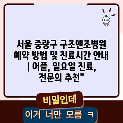 ✅ 중랑구 구조앤조병원의 편리한 예약 방법을 알아보세요!