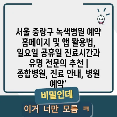 서울 중랑구 녹색병원 예약 홈페이지 및 앱 활용법, 일요일 공휴일 진료시간과 유명 전연락 추천 | 종합병원, 진료 공지, 병원 예약’에 대해 자주 묻는 질문 TOP 5