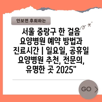 서울 중랑구 한 걸음 요양병원 예약 방법과 진료시간 | 일요일, 공휴일 요양병원 추천, 전연락, 유명한 곳 2025