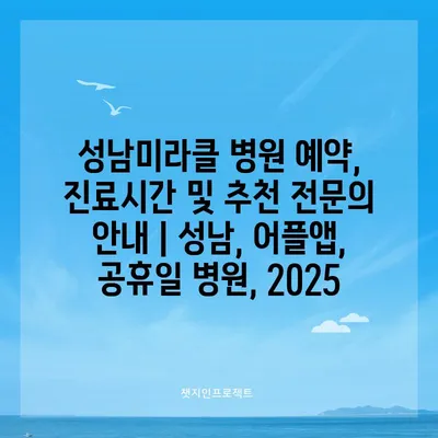 성남미라클 병원 예약, 진료시간 및 추천 전연락 공지 | 성남, 어플앱, 공휴일 병원, 2025 에 대해 자주 묻는 질문 TOP 5