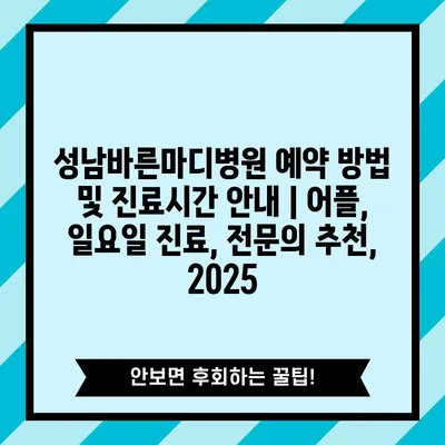 성남바른마디병원 예약 방법 및 진료시간 공지 | 어플, 일요일 진료, 전연락 추천, 2025