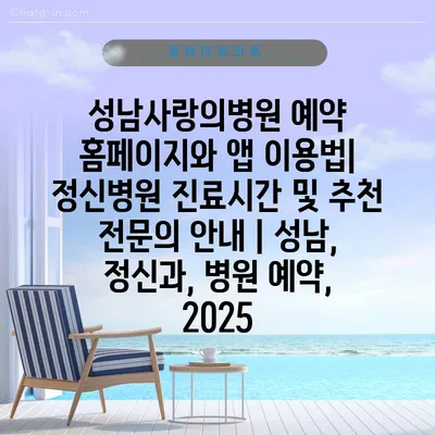 성남사랑의병원 예약 홈페이지와 앱 이용법| 정신병원 진료시간 및 추천 전연락 공지 | 성남, 정신과, 병원 예약, 2025 에 대해 자주 묻는 질문 TOP 5