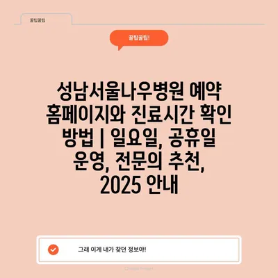 성남서울나우병원 예약 홈페이지와 진료시간 확인 방법 | 일요일, 공휴일 운영, 전연락 추천, 2025 공지 에 대해 자주 묻는 질문 TOP 5