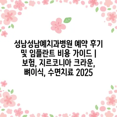 성남성남예치과병원 예약 후기 및 임플란트 비용 설명서 | 보험, 지르코니아 크라운, 뼈이식, 수면치료 2025 에 대해 자주 묻는 질문 TOP 5