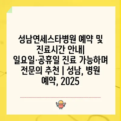 성남연세스타병원 예약 및 진료시간 공지| 일요일·공휴일 진료 가능하며 전연락 추천 | 성남, 병원 예약, 2025 에 대해 자주 묻는 질문 TOP 5