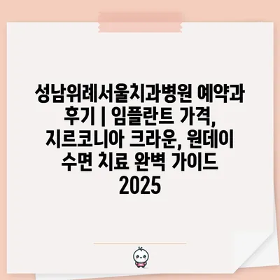 성남위례서울치과병원 예약과 후기 | 임플란트 가격, 지르코니아 크라운, 원데이 수면 치료 완벽 가이드 2025