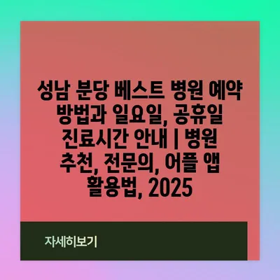성남 분당 베스트 병원 예약 방법과 일요일, 공휴일 진료시간 안내 | 병원 추천, 전문의, 어플 앱 활용법, 2025