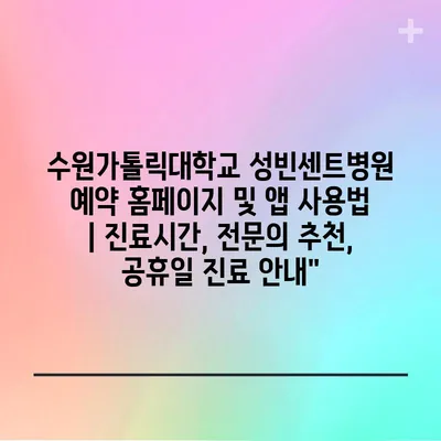 수원가톨릭대학교 성빈센트병원 예약 홈페이지 및 앱 사용법 | 진료시간, 전연락 추천, 공휴일 진료 공지에 대해 자주 묻는 질문 TOP 5