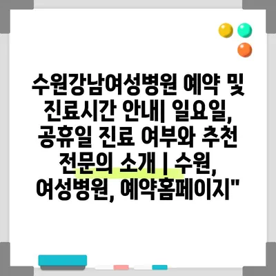 수원강남여성병원 예약 및 진료시간 공지| 일요일, 공휴일 진료 여부와 추천 전연락 소개 | 수원, 여성병원, 예약홈페이지 에 대해 자주 묻는 질문 TOP 5