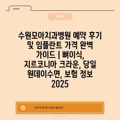 수원모아치과병원 예약 후기 및 임플란트 가격 완벽 가이드 | 뼈이식, 지르코니아 크라운, 당일 원데이수면, 보험 정보 2025
