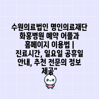 수원의료법인 명인의료재단 화홍병원 예약 어플과 홈페이지 이용법 | 진료시간, 일요일 공휴일 안내, 추천 전문의 정보 제공”