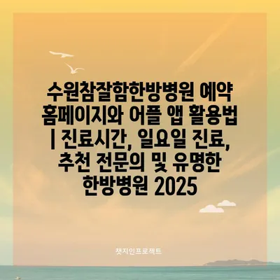 수원참잘함한방병원 예약 홈페이지와 어플 앱 활용법 | 진료시간, 일요일 진료, 추천 전연락 및 유명한 한방병원 2025 에 대해 자주 묻는 질문 TOP 5