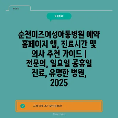 순천미즈여성아동병원 예약 홈페이지 앱, 진료시간 및 의사 추천 가이드 | 전문의, 일요일 공휴일 진료, 유명한 병원, 2025