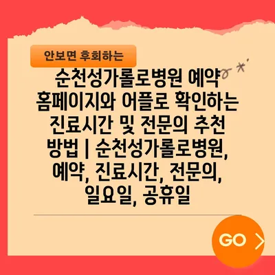 순천성가롤로병원 예약 홈페이지와 어플로 확인하는 진료시간 및 전문의 추천 방법 | 순천성가롤로병원, 예약, 진료시간, 전문의, 일요일, 공휴일