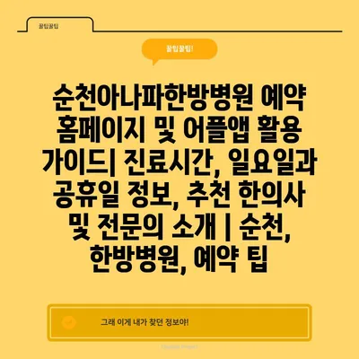 순천아나파한방병원 예약 홈페이지 및 어플앱 활용 가이드| 진료시간, 일요일과 공휴일 정보, 추천 한의사 및 전문의 소개 | 순천, 한방병원, 예약 팁