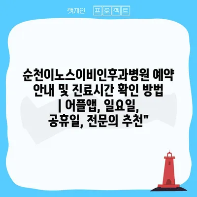 ✅ 순천이노스이비인후과병원의 진료시간과 예약 방법을 한눈에 알아보세요.