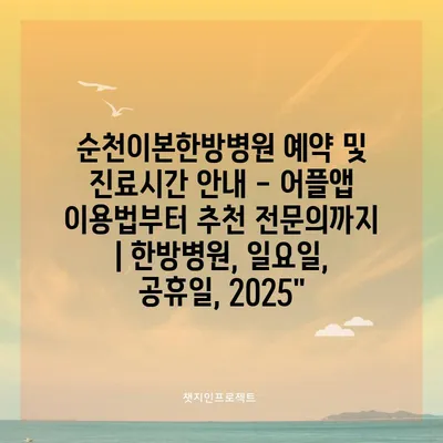 순천이본한방병원 예약 및 진료시간 공지 – 어플앱 이용법부터 추천 전연락까지 | 한방병원, 일요일, 공휴일, 2025