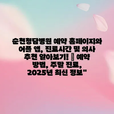 순천청담병원 예약 홈페이지와 어플 앱, 진료시간 및 의사 추천 알아보기! | 예약 방법, 주말 진료, 2025년 최신 정보”