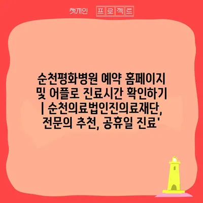 ✅ 순천평화병원의 진료시간과 예약 방법을 지금 바로 알아보세요.