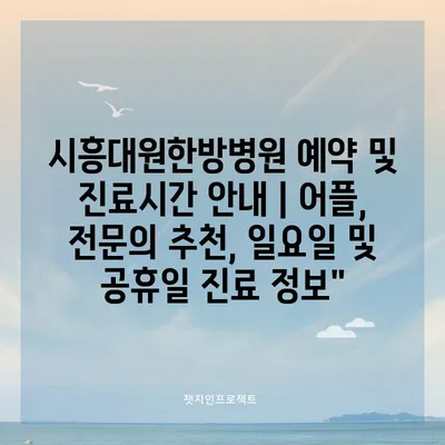 ✅ 시흥대원한방병원의 예약 방법과 진료 시간을 알아보세요.