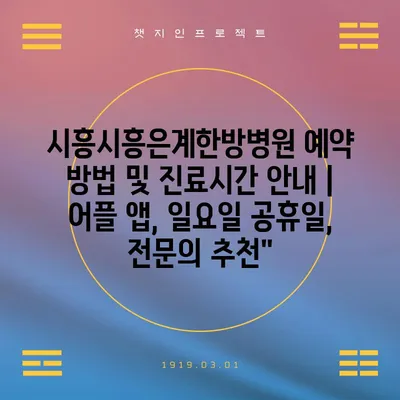 ✅ 시흥시흥은계한방병원의 예약 방법을 빠르게 알아보세요.