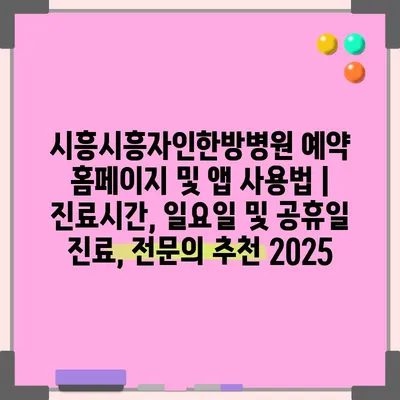 시흥시흥자인한방병원 예약 홈페이지 및 앱 사용법 | 진료시간, 일요일 및 공휴일 진료, 전연락 추천 2025에 대해 알아보겠습니다.