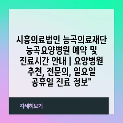 ✅ 능곡요양병원의 예약과 진료 정보를 쉽게 확인해 보세요.